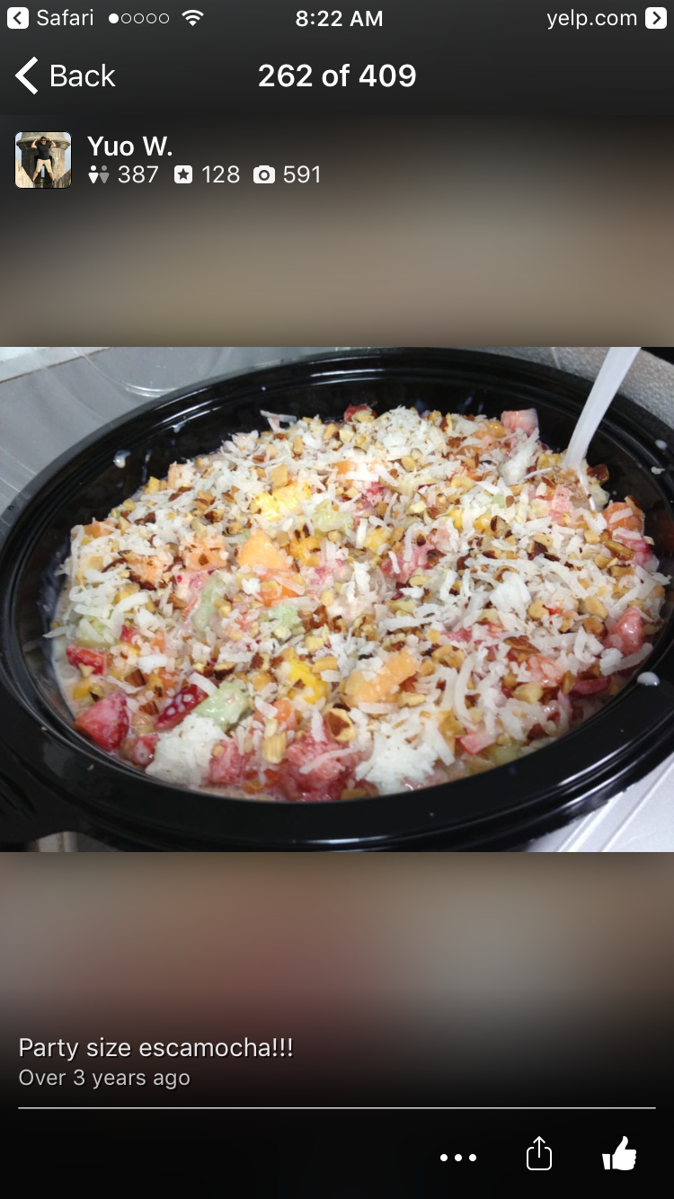 A super-sized escamocha made fresh with seasonal fruits and served in a bowl (160 oz)…